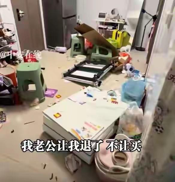 事件起于妻子张某(化名)在社交平台发布的视频。她在镜头前展示被砸的客厅,碗碎满地却无人收拾。张女士称,丈夫李某月入过万却强烈反对购买洗碗机,甚至将家砸得狼藉。她质疑:“明明消费得起,为何连个解放双手的电器都不许买?”